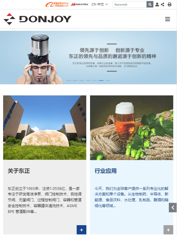 2020年3月,我司对www.donjoypump.cn/www.donjoyvalve.com进行了全新改版和升级,20201年2月,www.cndonjoy.com/www.donjoypump.com也即将焕新上线!这也预示着公司中英双官网全部升级完毕,正式投入使用。