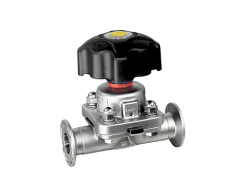 手动隔膜阀,通过手轮旋转带动阀杆上下运动,控制阀门隔膜片的开启、关闭;优良的隔膜系统无死角区域,易清洗,符合卫生要求;阀门安装长度符合≤3D要求。
